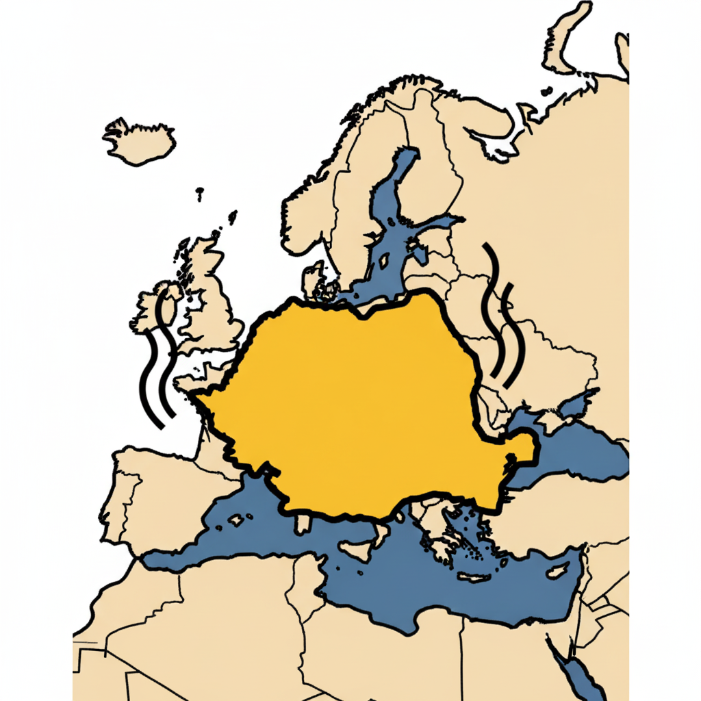 Rumania se encuentra en Europa del Este, formando parte del continente europeo y de la Unión Europea. Su ubicación geográfica la convierte en un punto de conexión entre Europa Central, Oriental y la región de los Balcanes. Limita con Ucrania al norte y noreste, Moldavia al este, Hungría al oeste, Serbia al suroeste y Bulgaria al sur. Al sureste, Rumania cuenta con salida al mar Negro, lo que le otorga importancia estratégica en términos comerciales y turísticos. El país está atravesado por los Montes Cárpatos, que dividen su territorio en regiones montañosas, colinas y llanuras, y por el río Danubio, uno de los ríos más importantes de Europa, que recorre el sur del país y desemboca en el mar Negro formando el Delta del Danubio.Descubra la magia de nuestras raíces